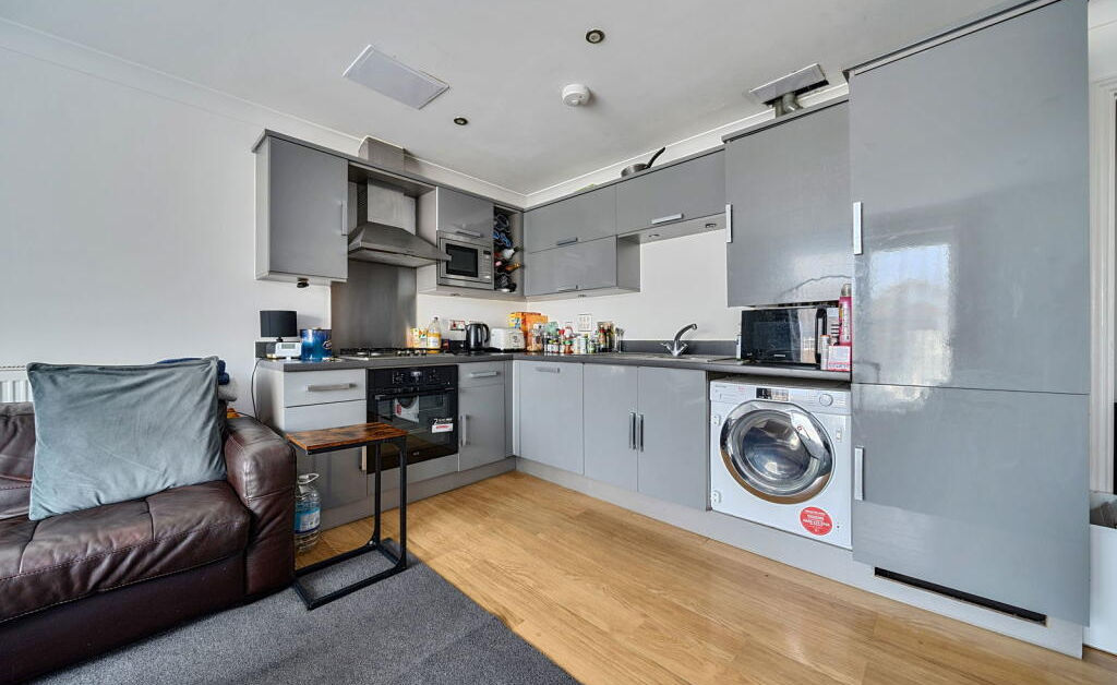 The development was built in 2007 and benefits from immaculately kept communal areas and grounds. The flat itself features a spacious open-plan living and kitchen area complete with appliances, one double bedroom (with space for wardrobes), and a modern bathroom.